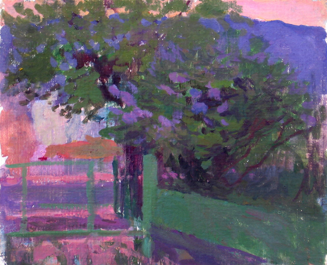 Flieder abends, lilac in the evening, plein air etude/ Öl auf Karton /Oil on cardboard, 1986