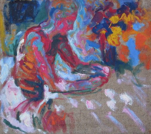 Im Garten (Jana)/ In the garden; Öl auf Jute/ Oil on jute, 44 x 35 cm, 1988